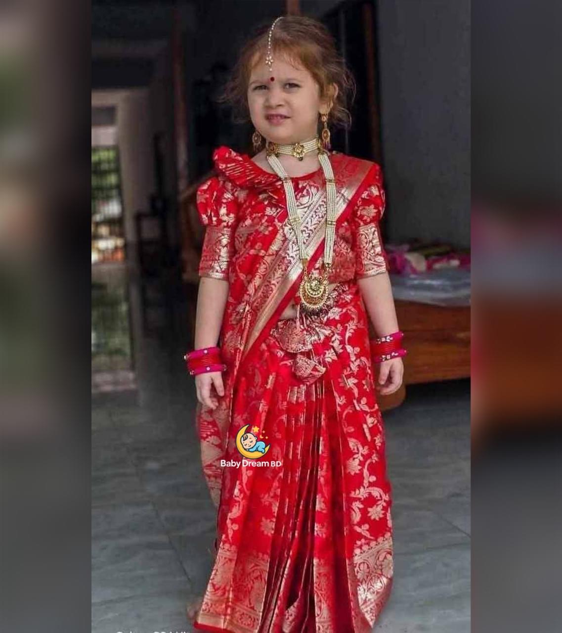আমরা আপনার ছোট মামনিটার জন্য নিয়ে এসেছি ( রেডি শাড়ি) , শাড়ির সাথে কুচি , ব্লাউজ ও পেটিকোট সব অ্যাডজাস্ট করে সেলাই করা থাকবে,